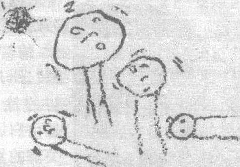 | 释义 | 象征期涂鸦与儿童真正图画之间的时期。3岁儿童对手的小肌肉群运动能有所控制,开始产生表现意识,并对其所画形状冠以形象名称,但所画形象与其称之的物象相距甚远或根本看不出眉目,仅是一种象征性质的表现,所以叫象征期。亦称“图式期”或“符号表现期”。又因为该时期的画是向着与名称相符的形象的一种过渡时期,故曾称其为“过渡期”。 象征期xiangzhengqi当孩子到了3岁左右时,便进入了美术创作活动的新的阶段一象征期。这一时期时间不长,是幼儿美术创作的过渡时期。在这个时候,幼儿已经产生了初步的表现意图,产生了简单的构思,能够将事物的特征用所掌握的极其简单的图形和线条表现出来。不过他们这时所能使用的形状十分有限,相同的或类似的形状在每个或同一个幼儿的不同作品中很可能代表了极不相同的事物,一形多义便成了这一时期幼儿绘画的主要特征。在创作时,孩子一般是边画边自言自语,不断地用言语对画的内容加以补充。从整个阶段看,开始时孩子以涂鸦期的形状去再现实物,以后则逐步发展,表现出更强的区别性。在象征期值得提醒注意的是:幼儿刚刚开始尝试利用他们在涂鸦期掌握的图形去表现他们的经验,还是一种新的探索。他们的表现、动机以及信心等方面都显得十分脆弱,尤其是对成人的反应比较敏感。如果这一时期的尝试较为成功并得到成人比较合适的评价和鼓励,幼儿将会树立起艺术表现的信心。 象征期Xiangzheng qi涂鸦与儿童真正图画之间的时期。3岁儿童开始产生表现意识,对手的小肌肉群运动有所控制,并对所画形状冠以形象名称。但所画形象与其称之的物象相距甚远或根本不相象,仅是一种象征性质的表现 (图4),所以叫象征期。亦称“图式期”或“符号表现期”。又因为该时期的画是向着与名称相符的形象的一种过渡,故曾称其为“过渡期”。象征期可分为两个阶段,初期是不成物形的象征阶段,后期是接近物形的象征阶段。开始,儿童先画了一个形状,将其想象为某种东西,或发觉象什么便说是什么东西。儿童在画的时候,并非有意要画某个东西,即便说出要画的东西名称,所画与其也一点不像。这个阶段的画面与“多形涂鸦”几乎无异,但由于对所画的形状冠以名称和赋予意义,而与无意识的涂鸦有着本质的区别。此后,儿童开始有意识表现,即先决定先宣称要画什么,或一边画一边说。虽然所画形象与宣称的形象相距甚远也毫不在意。象征初期由于儿童尚不能自如地控制手的协调动作,笔的走动笨拙、蹒跚,一部分笔道失控,所画的形象是很难辨认的符号似的形象,形象间也看不出有什么联系。象征期儿童画的人,开始是以一个近似的圆形代表人,以后渐渐画出近于圆形的头,并在头的下边画有两条线代表躯干和腿,有的圆形头上画出了眼睛和嘴,形成初具的人形,称之为蝌蚪人(图5)。象征后期,儿童在蝌蚪人的基础上画出躯干,成为有躯体的正面人。所谓躯干,或是在原来两腿之间画一条横线,或是在两腿之间画上一排扣子图6。