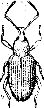 | 释义 | 象甲亚目Rhynchophora昆虫纲,鞘翅目。成虫头部延长成象鼻状,咀嚼式口器着生于延伸部顶端。触角多为膝状,末端3节呈锤状,外咽缝愈合成1条或消失。足跗节假4节。幼虫无足型,体肥胖多皱纹,略弯曲。成、幼虫均为植食性。重要科有:象甲科,触角线状,棍棒状或膝状。幼虫蛀食根、茎、叶(潜食于叶内)、花、果、种子、虫瘿等,如食害棉苗及蕾铃的棉尖象(Rhytoscaphusgossypii Chao)。小蠹科,体小,圆筒形。喙短而宽。触角短,锤状。前胸背板大,覆盖头后部。前足胫节具成列小齿。成、幼虫蛀食树皮和木质部,作分支隧道。如多毛小蠹(Scolytus seulensis Murayama)。