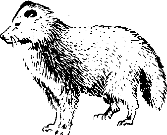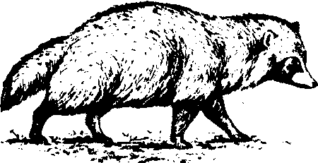 图399 貉 貉raccoon dog,Chinese raccoonNyctereutes pro-cyonoides Gray,又称貉子。哺乳纲,食肉目,犬科。分布于黑龙江、吉林、辽宁、河北、山西、江苏、安徽、浙江、江西、福建、广东、云南等省区。体形似狐而小,吻部及耳均短,体肥大,尾蓬松。背棕灰色或略带橘黄色,中央杂有黑毛,故从头顶到尾部有不显著的黑色纵纹。体侧灰黄或棕黄,腹毛色淡,四肢浅黑或咖啡色。栖息于河谷、草原和靠近溪流、河、湖附近的树林中。昼伏夜出,行动慢。主要以小形啮齿类以及鱼、蛙、蟹等为食。每年5~6月产仔,每胎4~7仔。为重要毛皮兽之一,可以人工驯养,增加毛皮产量。