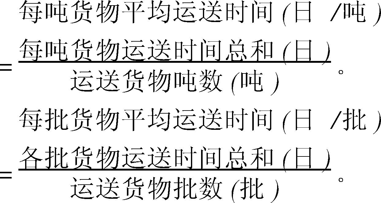 平均每吨(每批)货物从发送地运至目的地所需要的时间。反映运输工作质量的重要指标。计算公式为: