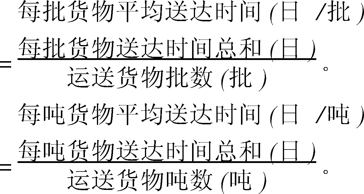 | 释义 | 货物送达时间cargo delivery time每批货物或每吨货物自承运时起至到站卸车时止所延续的总时间。从时间上考核货物运输质量和运输组织工作质量的重要指标之一。包括货物发送时间和运输时间两部分。前者指货物发送作业所消耗的时间,后者指货物的运行与途中作业所消耗的时间。计算公式为: