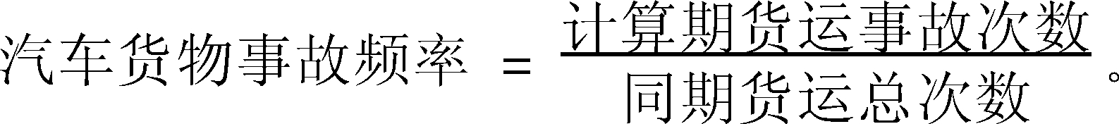 一定时期内某地区或企业发生的货物运输事故次数(即每批托运货物在承运责任期内发生货损、货差等事故次数的累计数)与同期所承运货物总次数之比。反映汽车货物运输工作质量指标之一。用千分数表示,计算公式为: