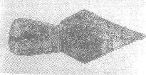 | 释义 | 贴罗绣僧帽元。帽高35厘米,口沿每方宽12.5厘米,顶部四角每方宽21厘米,后襜长17厘米,襜头宽35.5厘米,左右两耳襜接帽口处宽10厘米,下端长21厘米,宽15厘米。1950年北京双塔寺海云和尚墓出土。北京首都博物馆藏。这顶贴罗绣僧帽是元代海云和尚的殉葬品。浅沉香色罗地,各方边沿黑布为地,将深褐色罗剪成如意形复缀的火焰花纹,蔓草花纹粘贴其上,用白色丝线锭锁合,再以黄棕色双股线固定。
