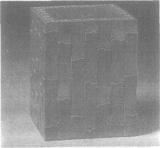 | 释义 | 贴黄仿攒竹方笔筒清。高15厘米,口、足长、宽均为12厘米。北京故宫博物院藏。矩形。颇似由24根方竹攒制而成的。实际上是先将木胎每边的内外并排刻出方竹竿节,高、下错开,再按刻痕贴竹黄,从而达到以假乱真效果的。这种在不规则的胎上贴竹黄的技法,看似简单,实则复杂,最难熨贴无痕。而似此天衣无缝者,非良工不能也。贴黄见“贴黄蕉叶纹长方盒”条目。