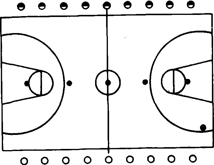 适用于3—6年级。可以发展学生的手臂力量。器材 小篮球12个,实心球5个。场地 在篮球场上画两条线,连接限制区与端线的4个交点,使其成为6米宽、26米长的“河床”,实心球均匀地放在“河床”中间。游戏方法 把学生分成人数相等的两个队,分散站在篮球场两侧边线上,各队分持6个篮球。教师发令后,各队用小篮球掷实心球,掷完后跑步去捡球,迅速回到原位,准备第二次掷击。在规定的时间内,以实心球靠近少的队为胜。