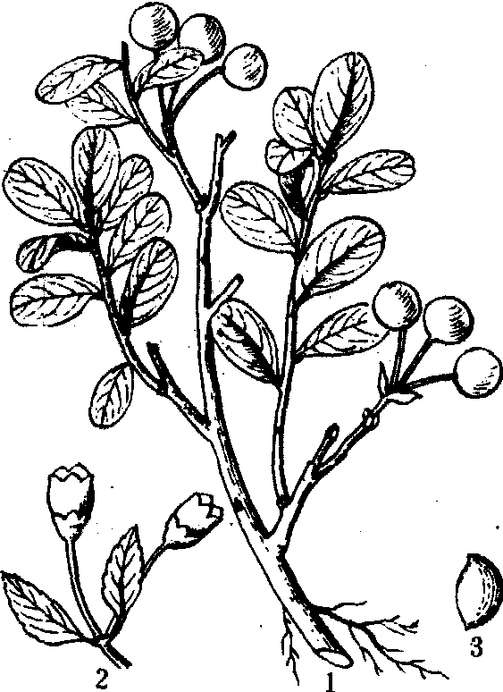 越 橘 1. 果枝; 2. 花; 3. 种子 经济价值 浆果维生素及糖酸含量均丰富, 具有特殊风味,除鲜食外,可制清凉饮料以及果酒、果酱等。冬季冷冻后远销各地供鲜食。常绿越橘可供观赏。大兴安岭一带多取其叶代茶饮。