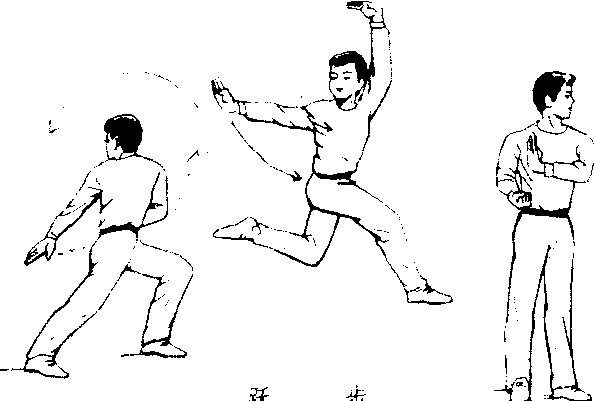 跃步 跃步Yuebu)步法之一。是后腿提起前摆,前脚蹬地起跳,接着后脚、前脚依次向前落地的步法动作。