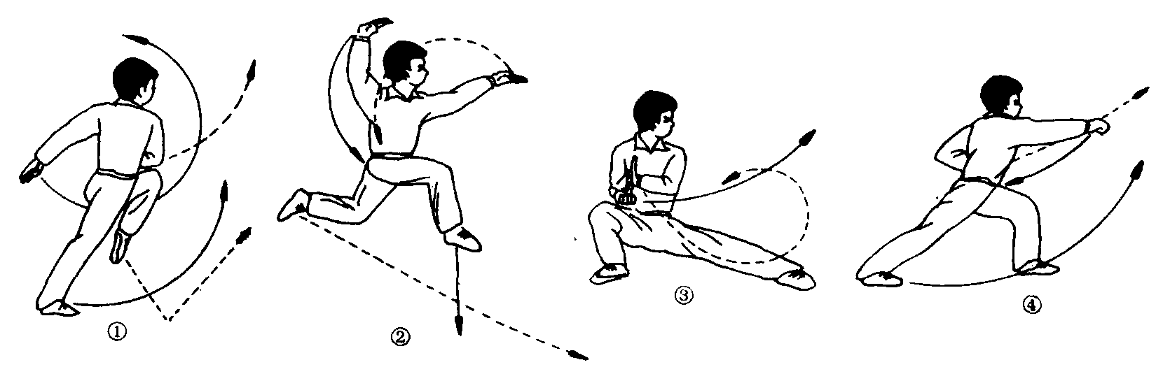 第二套少年拳动作之三。为跃步与冲拳依次完成的拳术动作。教学重点 强调:❶左腿屈膝前提的同时,两臂要由上向身体左侧抡摆。❷起跳要轻快,空中两臂动作要舒展。❸落地要成仆步。❹上体迅速前倾的同时搂左手,然后再完成弓步冲拳。