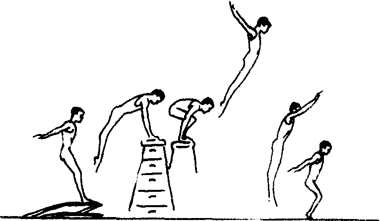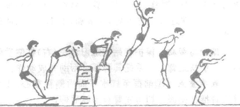 | 释义 | 跳上成蹲撑挺身跳下跳起,蹲撑在器械上,随即挺直身体跳下的动作。动作要领:起跳后,两臂前摆,稍含胸收腹。手撑器械时,提臀、屈腿,两膝并拢蹲撑在器械上。然后两脚向后下方蹬离器械,同时两臂向前上摆,两腿伸直、挺髋向前上方腾起,然后成挺身姿势落下。保护与帮助:保护者站在器械前侧方, 一手握练习者上臂,另一手托腹部,助其成蹲撑。然后在落地点侧面,手扶其腹背。教学重点:在地上俯撑,后摆腿成蹲撑,接着挺身跳。然后在器械上做完整动作练习。