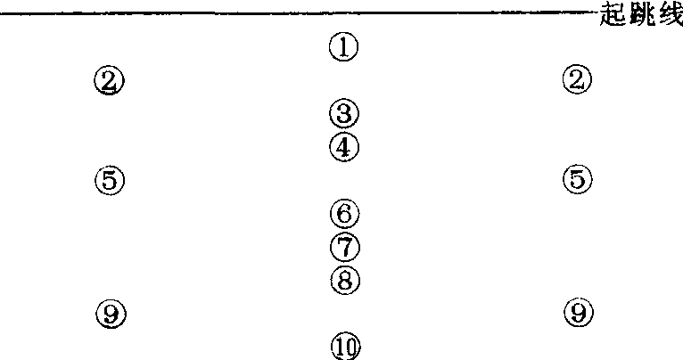 | 释义 | 跳圆圈tiao yuanquan游戏的主要目的是帮助幼儿复习10以内数的顺数和倒数,同时可以促进幼儿的单、双腿跳跃和平衡能力的发展,锻炼幼儿的身体。游戏一般在户外进行,可以是全体幼儿,也可以是小组及个别幼儿。游戏之前,成人可以先在地上用粉笔画成如下面排列的13个圆圈(圈内写有数字)和一条直线(起跳线)。游戏开始,幼儿排队,依次跳圆圈。具体跳法是:跳者站在起跳线上,用单腿跳到