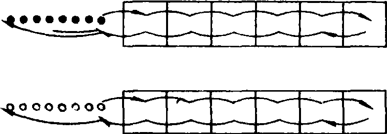游戏方法 将参加游戏的学生分成人数相等的甲乙两队。各排成一路纵队站在第一个方块线后。教师发出口令后,比赛开始,各队的第一名学生迅速用单脚连续跳进每一个方块,到达第8个方块后,换另一只脚跳回,第二名按上述方法继续比赛,直至全队完成,两队以先完成的队为胜。 游戏规则 ❶在跳方块时不能踏线或漏跳。 ❷不能双脚同时着地。 |