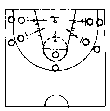 | 释义 | 跳起投篮简称跳投。是投篮技术之一。它具有突然性强、出手点高和不易防守的优点。可与传球、运球突破和其他技术动作结合,在原地、行进中急停和面对或背对球篮的情况下运用。它已成为现代篮球运动主要的投篮方式。动作要领(以原地跳起单手肩上投篮为例):双手持球于胸前,两脚自然开立,屈膝,重心在两脚之间。脚掌迅速用力蹬地向上起跳,同时双手举球至肩上,右手托球,左手扶球的左侧方。当身体接近最高点时,左手离球,右臂向前上方伸直,手腕前屈,食、中指拨球,通过指端将球投出。落地时屈膝缓冲,准备下一个动作。教学重点:要求起跳短促有力,出手高而快,强调在空中要保持身体平衡。其手法与原地投篮相同。练习方法:❶模仿性练习。不持球做原地跳投模仿动作,体会起跳举球、抬肘伸臂、屈腕和拨指的动作。