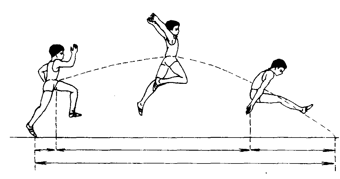 跳远远度分解图 跳远能发展速度、灵巧、弹跳力等身体素质,对培养和发展勇敢、果断精神有积极意义。在跳远教学中,初中一、二年级学生着重于发展快速而有节奏的助跑能力;掌握助跑起跳技术;学会蹲踞式跳远姿势;结合辅助练习手段,发展跳跃能力。初中三年级以上学生主要学习挺身式跳远技术;高中学生选学走步式跳远姿势,重点掌握挺身式跳远技术。跳远教学课一般安排在短跑和跳高项目之后。 跳远比赛的主要规则是:❶试跳成绩以运动员身体着地的最近点至起跳线的垂直距离为准。 ❷以试跳中最好一次的成绩为其最后成绩。 ❸有下列情况之一者判为试跳失败:起跳时身体任何部位触及起跳线前的地面或在橡皮泥显示板上留有痕迹;由起跳线或两端延长线后面起跳;在落地过程中触及沙坑以外比落地点近的地面;完成试跳后向后走出沙坑。 ❹起跳板应为长方形木料或其它坚硬的材料制成,长为1.21~1.22米,宽为19.8~20.2厘米,厚10厘米,涂以白色。起跳板埋入地下,其表面与地面平齐。 ❺沙坑内填入沙子,沙面应与起跳板齐平。 跳远Tiaoyuan又称急行跳远。是在助跑后单脚起跳,身体腾空以获得远度的田径运动项目。古希腊奥林匹克运动会,跳远是五项全能比赛项目之一。1896年第1届奥运会是正式单项比赛项目。1948年第14届奥运会跳远被列入女子比赛项目。现在的女子七项全能和男子十项全能竞赛中,跳远都是其中项目之一。跳远技术由助跑、起跳、腾空和落地四个部分组成。快速奔跑能力是跳远的基础, 助跑和起跳的结合是技术的关键。