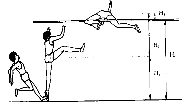 跳高技术由助跑、起跳、过杆和落地组成。跳高成绩可视为几部分高度的和,即H=H1+H2+H3。❶H1是起跳前的身体重心高度。 ❷H2是身体腾空时重心升起的高度。 ❸H3是身体重心腾起的最高点与横杆之间的距离。过杆时的人体重心在横杆之上,因此H3是个负值。其中H2对跳高成绩影响最大,主要决定于助跑起跳时垂直速度的大小。H3的绝对值相对较小,合理的过杆技术使身体重心在比较靠近横杆的状态下过杆,对取得优异成绩意义较大。H1的值主要决定于运动员的身体条件和起跳时的身体姿势, 运动员的选材非常有意义。因此,理想的跳高技术是增大H1和H2,并选择最合理的过标姿势, 身体各部位的补偿动作使身体顺利越过横杆, 以取得最佳效果。 练习跳高主要是提高弹跳力, 增强下肢肌肉、关节、韧带的力量,发展灵敏、协调等身体素质,培养学生勇敢、果断和克服困难等优良品质。小学阶段的主要跳高教材是跨越式跳高。在正确掌握助跑和起跳的基础上,根据场地器材条件,可进行背越式姿势的初步教学。 跳高比赛的主要规则是,❶测量高度时,须用量尺测量地面与横杆上沿最低处的距离, 以厘米为测量单位。 ❷运动员必须用单脚起跳。 ❸运动员以其最好的一次试跳成绩作为决定成绩。 ❹如有下列情况之一者则判为试跳失败:试跳中碰落横杆;在越杆之前,身体任何部份触及立柱之间、横杆延长线垂直面以外的落地区或地面。 ❺在任何高度上只要连续3次试跳失败,即失去继续比赛资格。 ❻运动员可以在任何一个高度上决定是否免跳, 但在下一个高度上试跳的次数只能是前一高度试跳失败后所剩余的次数。 跳高田径运动跳跃项目之一。跳高以过竿技术不同分为5种姿势,即背越式、俯卧式、剪式、滚式以及跨越式。跳高技术由4部分组成,即助跑、起跳、腾空过竿、落地技术。正式比赛中,每个运动员在每个高度上,均有3次试跳机会。 |
