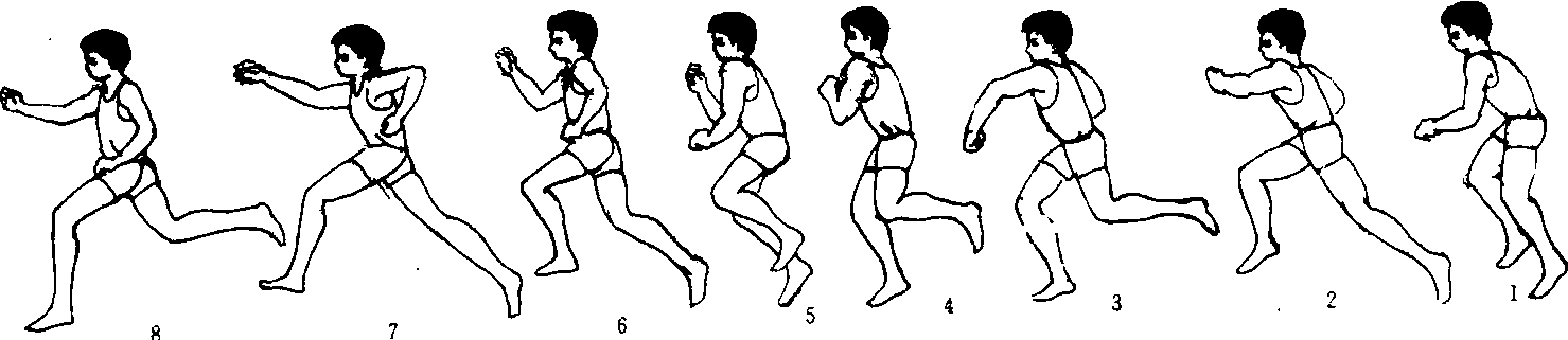 动作要领 ❶助跑开始上体适当前倾,后蹬积极,摆臂有力,速度由慢到快逐渐加速。 ❷最后3、4步助跑时上体正直,后蹬角度小,大腿带动小腿积极前摆,落地点离身体重心的投影点较远,用全脚掌做滚动式着地, 身体重心平稳下降, 助跑节奏加快。 教学重点 ❶掌握跨越式跳高逐渐加速, 脚掌滚动式着地,身体重心平稳下降,节奏强的助跑方法。采用20米加速跑、矮人走、弓箭步走、助跑后单脚跳起用手摸高、助跑后单脚跳起以摆动腿触悬挂物等方法体会助跑技术。 ❷掌握俯卧式跳高中,加大最后几步身体重心下降的幅度, 并与起跳动作紧密衔接的技术。 |