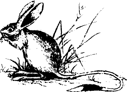 图393 跳鼠 跳鼠jerboa哺乳纲,啮齿目,跳鼠科。体形较小,尾长多超过体长。头大。耳大似兔。前肢短小,用于取食和挖掘;后肢特长,善于跳跃。尾在跳跃时有平衡作用,一般尾端具黑色或白色的簇毛。穴居、群栖。常夜出活动。食植物的种子和茎叶。为害农作物、蔬菜和瓜类。分布于北非、欧洲和亚洲东北部的沙漠及干草原地区。中国内蒙古及西北地区约有10种,主要有:三趾跳鼠(Dipus sagitta)、五趾跳鼠(Allactaga sibirica)、长耳跳鼠(Euchoreutes naso)、羽尾跳鼠(Stylodipus telum)等。 |