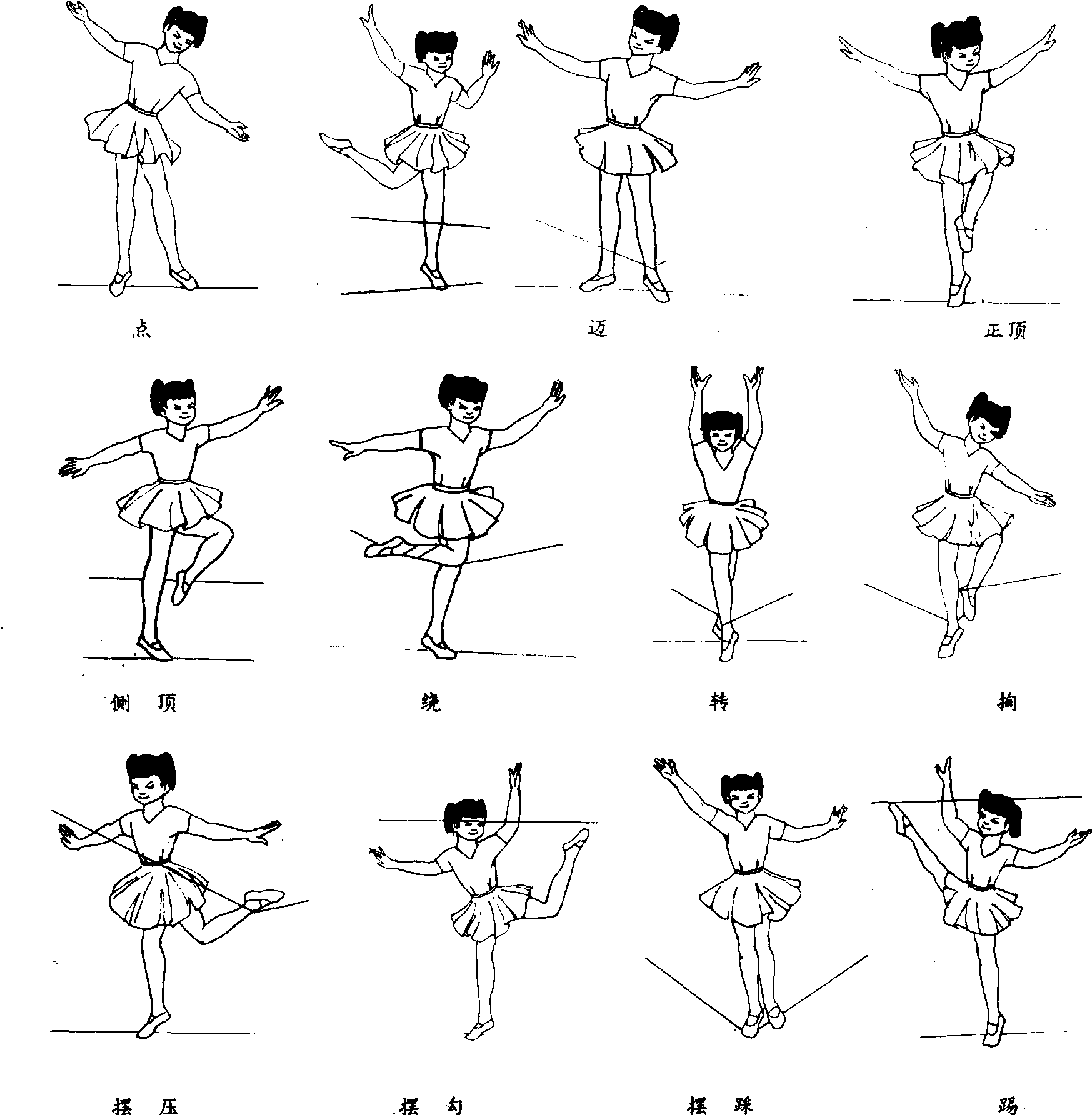 一般在第三高上做,一脚将皮筋勾下,另一脚迈过皮筋,用脚面把皮筋踢起来。