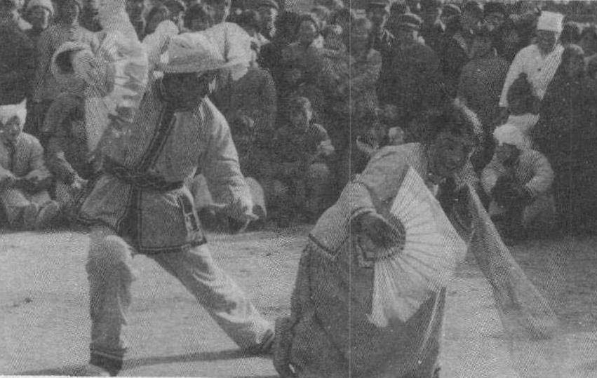 | 释义 | 139 踢场子见27136陕北秧歌。 踢场子陕北民间舞蹈。多以一男一女对舞的二人场子为主,也有一男两女表演的三人场子和多人表演的集体形式。踢场子中的女角称“包头”,男角称“挎鼓子”。两人在唢呐锣鼓的伴奏中,通过嬉戏逗耍表现男女之间的欢快和喜悦。以抒情格调为主的称“软场子”(又称文场子); 动作粗犷具有民间摹术风格的称“硬场子”(又称武场子);表演诙谐、风趣滑稽的称“丑场子”(又称老人场子)。踢场子动作丰富,舞姿婀娜,节奏欢快,情绪活泼。其中“三脚不落地”、“凤凰展翅”、“金鸡独立”、“跌软腰”等动作,形成了独特的表演风格和地域特色,成为当地群众春节闹秧歌时最受欢迎的节目之一。