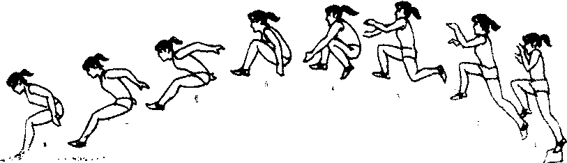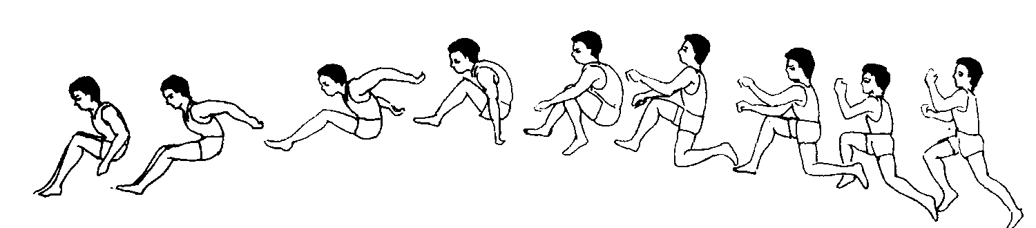 蹲踞式跳远 蹲踞式跳远Dunjushi tiaoyuan跳远技术之一。动作简单,适合于小学生学习。腾空中的屈髋团身动作影响身体姿势的平衡, 给良好的落地动作造成困难。