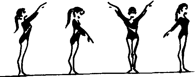 完成以上动作,要求姿势和站立准确,上体正直,重心落在两脚上。做点立时重心落在支撑腿上。 |