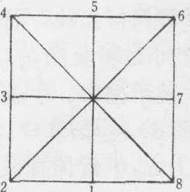 基本方位一般以学生自身为基点,以身对教师的方向为正前方,每向右转45°为一个方向,共分八个方向。为了记述方便,用1~8八个数字来代表八个方向,称作1点、2点……8点。见身体方位图。