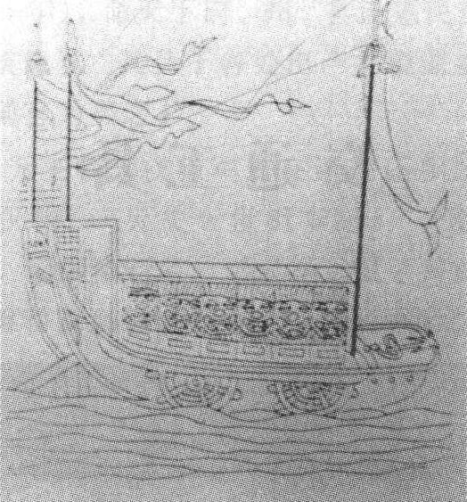 宋车船 车船中国古代用人力驱动运转的明轮船。早在南北朝(420~589)时就已有车船的记载。唐代(618~907)李皋对车船的发展起了承前启后的作用。宋代的车船很盛兴,绍兴二年(1132)王彦恢制造的战舰,旁设4轮,每轮8桨片;木匠高宣曾制造大小车船10余种,大型车船长20~30丈(宋代1丈=2.45 m,故20~30丈为49~73.6 m),吃水1丈(2.45 m)左右,可容纳700~800人;中型车船一般承载200~300人。车船有2车、4车、5车、8车、9车以及23车、24车等多种。宋代最大的车船长36丈(约88.3 m)、宽4丈1尺(约10.1 m) |