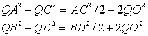 QA2+QC2=QB2+QD2 (8) (7)式减去(8)式,再除以2,得