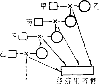 | 释义 | 轮回杂交rotational crossing经济杂交方式之一。杂交的各原始亲本品种(公畜)轮流与各代杂种(母畜)进行回交,使每代都获得经济杂种;选留其中部分杂种母畜作种用,再与某一原始亲本品种回交。周而复始,绵延不断。依杂交品种的数目而分为两品种轮回杂交、三品种轮回杂交和多品种轮回杂交方式。除第一次杂交外,母畜均为杂种,可充分利用繁殖性能的杂种优势,尤其对单胎家畜的杂交生产极为有益;每代交配双方都存在一定差异,因而都能产生一定的杂种优势。但轮回杂交需要代代更新公畜,易造成公畜使用上的浪费;配合力的测定工作比较麻烦。