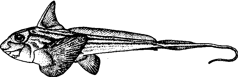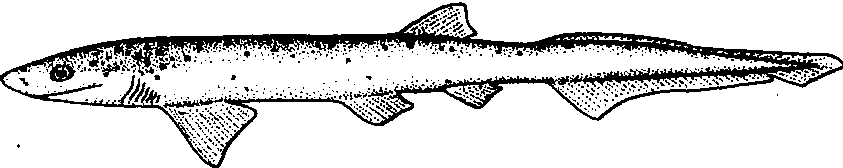 图 1 扁头哈那鲨 鲨形总目包括全部海生鲨类,中国产7目: ❶六鳃鲨目(Hexanchiformes),如扁头哈那鲨(Notorhyn-chus platycephalus),体大,长约3米,重数百千克;头扁圆,鳃裂7对; 全身灰褐色,饰有不规则黑褐色斑点。底栖,肉食性,卵胎生(图1); ❷虎鲨目(Hetero-dontiformes),如宽纹虎鲨、狭纹虎鲨; ❸鼠鲨目(Lam-niformes),如噬人鲨、姥鲨; ❹真鲨目(Car-char-hiniformes),如白斑星鲨、阔口真鲨、双髻鲨、斜齿鲨等。白斑星鲨(Mustelus manazo)的牙细小,平铺排列,侧线及其上部散有白斑; 数量多,产值大,是北方海域常见鲨类之一。双髻鲨(Sphyrna zygaena)的头形奇特,前端连同鱼眼往两侧伸展如槌状,左右鼻孔相距甚远;黄海和渤海的产量高; ❺角鲨目(Squali-formes),如白斑角鲨(Squalus acanthias),背鳍两个,前方各有一枚硬棘,无臀鳍; 产于黄海、渤海和东海北部,有时也进入港湾及河口索食; ❻扁鲨目(Squatinifomes),如日本扁鲨和锯鲨目(Pristiophori-formes),如锯鲨。鳐形总目除能兼栖于河流及海洋两种水域的赤𫛏外, 全是海生鱼种。分布在中国的有:❶锯鳐目(Pristiformes),如尖齿锯鳐、小齿锯鳐; ❷犁头鳐目 (Rhinobatiformes),如犁头鳐(Rhinobatosschlegeli)是中小型温水性底栖鱼类,体平扁,体盘的长大于宽,头吻均长似犁,喷水孔大,口和鳃裂较小,尾上有背鳍两个,沿海各地都有分布; ❸鳐目(Raji-formes),如孔鳐、斑鳐; ❹鲼目(Myliobatiformes)如赤𫛏、 燕𫛏、 鸢鲼、 赤𫛏(Dasyatis akajei), 体盘宽过其长,无背鳍和臀鳍; 尾细长如鞭,背面有带锯齿的硬棘1枚,基部连有毒腺,人被螫后可引起剧烈疼痛; 食贝类和甲壳动物; 卵胎生; 分布在东海和南海,也见于广西龙川、桂平的江河中(图2); ❺电鳐目(Torpediniformes),如日本单鳍电鳐、坚皮单鳍电鳐等。全头亚纲 (Holocephali)的上颚与颅骨愈合,有膜质鳃盖,成鱼体表光滑无鳞,全世界仅有银鲛目(Chimaeriformes) 一个类群,代表动物是黑线银鲛(Chimaera phantasma)。银鲛的体前部粗大,往后延伸至尾成细长的鞭形,头侧扁而高,口小,齿呈门牙状; 背鳍两个,第一背鳍具硬棘,下连毒腺; 体银灰色,侧线下方的胸腹鳍之间有一黑色纵带; 是东海和黄海常见的中型鱼类(图3)。