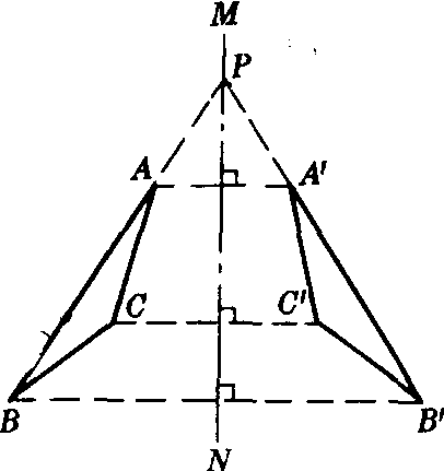 如图,△ABC与△A′B′C′关于直线MN对称.MN是对称轴. 两个成轴对称的图形有如下性质:❶若两个图形关于某直线对称,则对应点的连线被对称轴垂直平分; ❷两个图形关于某直线对称,若它们的对应线段或其延长线相交,则交点在对称轴上.如图,A,A′是对称点,线段AA′,被对称轴MN垂直平分;对应线段BA和B′A′,它们的延长线交于对称轴MN上一点P. |
