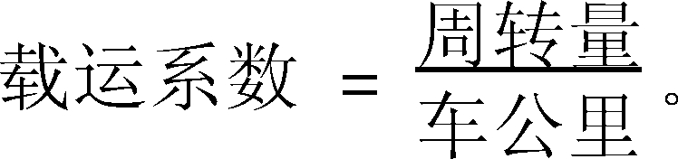 又称“车公里产量”。车辆完成的周转量与总行驶里程之比。道路运输业务中反映车辆利用程度、装载能力和拖挂能力的综合指标。在车公里一定的情况下,提高载运系数,可增加周转量,提高车辆利用率,降低单位运输成本。其计算公式为: