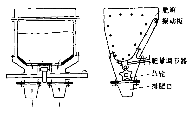 图3 几种典型排肥机构 中耕追肥机在中耕时追施化肥的机具。中国从1956年开始研制,先后研制出多种中耕追肥机。中耕追肥机由土壤工作部件和追肥装置2部分构成。按土壤工作部件可分为铲式和旋转式2种。中耕地下约10 cm处施肥比地表施肥可提高肥效30%~50%。 |