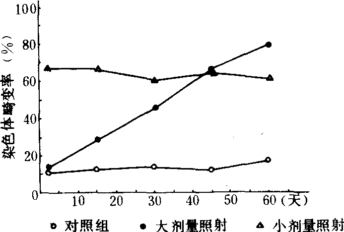 图1-5 快中子照射对小鼠肝细胞染色体畸变率的影响 |