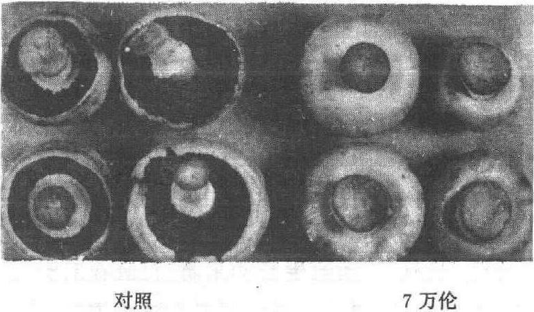 图 2 γ-射线辐照的蘑菇 60年代中叶以来,一些国家和国际组织批准某些食品可应用γ-射线处理(见表)。联合国粮农组织、国际原子能机构、世界卫生组织(FAO、IAEA、WHO)专家委员会宣称,经适宜剂量辐射处理的食品对人体是安全可靠的。1980年该委员会进一步指出,鉴于1万戈瑞(Gy)以下剂量辐射处理的任何食品都不会引起毒理学危害,因此用此剂量辐射处理的食品不需再作毒性试验。但对蔬菜来说,因为采收后仍然是有生命的机体,辐射处理的剂量太低可能不起作用,甚至起相反的作用; 剂量太高则会发生辐射伤害,最常见的是引起组织褐变,还会削弱产品原有的抗病性,甚至整个机体死亡。因此,如欲对蔬菜产品起选择性杀菌防腐的作用,要谨慎确定合宜的辐射剂量,既要考虑到产品和病菌对射线的耐受性,还要考虑到病害的发生和侵染规律,包括辐射处理后病菌的再侵染。 世界上批准蔬菜辐射处理概况(至1976年12月)*