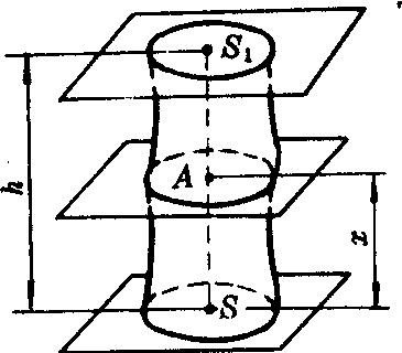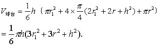 上式表明,A是x的二次函数,因此球台的体积可以用辛卜森公式计算. 因为S1=πr12,S=πr2.设r0是中截面圆半径,当x=h/2时,则
