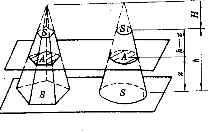 这就是通常应用的柱体体积公式. 当台体的上底面退缩成一点时,它就变成了锥体