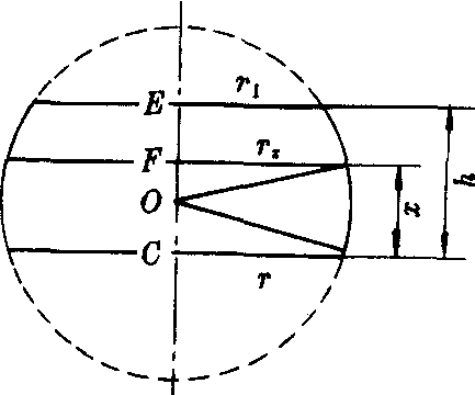 图3 ❷球台、球和球缺的体积 如图3,用r1,r和rx分别表示球台的上、下底面半径以及平行于底面且距下底面为x的截面圆半径,设OC=d,则OE=h-d,OF=x-d.