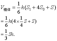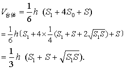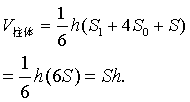 当台体的两底全等时,就变成了柱体(棱柱或圆柱),这时S1=S=S0,将它们代入辛卜森公式,得