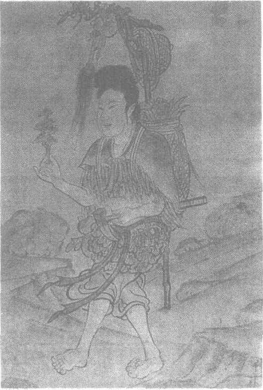 | 释义 | 辽人采药图轴辽。无款。纸本设色。纵54厘米,横34.6厘米。1974年发现于山西省应县木塔内。山西雁北地区文物工作站藏。图中一人采药归来,宽深的背篓里装满了灵芝和其他药草,篓边还挂着蹬山用的寿杖、遮阳用的竹笠、饮水用的葫芦、驱蚊蝇用的拂尘。从中,我们可以体味出采药生活的辛苦。采药人左手握着药锄,右手举起一段灵芝,也不顾山路是否顺畅,边走边仔细观察灵芝的成色,脸上露出喜悦之色,那副自得其乐的神情刻画得十分生动。而从其披兽皮、围叶裳、着短裤、带书卷、袒腹跣足的装束推测,这个采药人可能就是传说中尝百草的神农氏。他头梳高髻,眉目宽细,面庞长圆、丰满,形象朴实而憨厚。此图线条粗放,笔墨繁简、浓淡互为映照,有民间画的质朴风格。