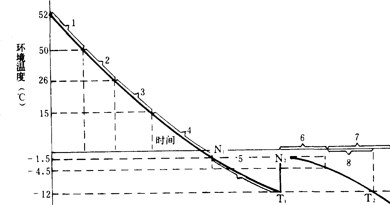 | 释义 | 过冷却理论supercooling theory解释昆虫体液在低于0℃的低温下仍不冻结的学说,也称昆虫耐寒性理论(cold hardiness theory)。昆虫是变温动物,体温随外界环境温度的变化而变化。昆虫体液内含有的大量糖、脂肪、蛋白质等化学物质,同原生质形成一定的有机结构,使体液可忍受0℃以下的低温仍不冻结,这种现象称为“过冷却现象”(super-cooling)。俄国巴赫梅捷夫(П.Бахметьев) 1907年创立了“复苏现象”(anabiosis)理论,他提出当外界温度低于冰点时,昆虫体液处于过冷却阶段,呈冷昏迷状态,但不致生理失调; 此时如环境温度回升,昆虫仍可恢复正常活动。当体温下降到零下某一点(T1)时,虫体组织细胞内放出潜热,使体温突然回升到接近0℃(绝不达到0℃)的地方。上述释放潜能的起点(T1)称为过冷却点(supercooling point)或临界点。然后体液开始冻结(N2)。如体温继续下降,昆虫就进入假死状态。此时若环境温度回升,昆虫仍有恢复生活的可能,一旦体温降到T2,一般情况下昆虫不能再复苏。低温点T2称死亡点(见图)。