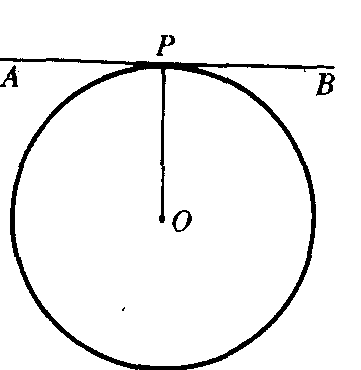 已知 ⊙O及⊙O上的一点P.求作 经过P点的⊙O的切线.作法 ❶连结OP;❷过P点作AB⊥OP.则直线AB就是所求的切线.