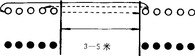 适用于5—6年级。可以使学生掌握传球、接球的基本技术。器材 小篮球2个。场地 在篮球场或空地上画两条相距3—5米的平行线。游戏方法 把学生分成人数相等的2—4队, 每队再分甲、乙两组。各成一路纵队,面对面站在两条平行线后, 乙组排头按规定的传球方法 (如 “双手胸前传