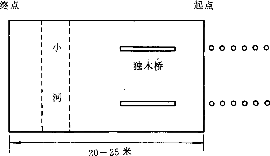 适用于3—5年级。可以发展学生负重奔跑能力,提高身体协调性。器材 跳箱盖或木板2—4块,实心球若干个(做弹药)。场地 在操场空地画两条相距20—25米的平行线,一头为起点,一头为终点,中间设两道障碍,一道是横宽1米的小河,另一道是用跳箱盖或一块长1.5米的木板做独木桥。游戏方法 把学生分成人数相等的2—4队。每人持球1—2个,成纵队站在起点线后。教师发出开始口令后,各队第一人迅速前跑,过独木桥,然后跳过小河,继续前跑至终点线,把“弹药”放在终点线后,快速按原路线回跑。当手摸到本队第二个同学手中实心球后,第二个同学迅速前跑。如此依次进行,最后以全队“弹药”先运完为胜。