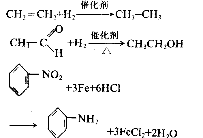 在有机化学反应中,凡有机物分子加氢或去氧的反应都叫做还原反应。如: