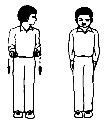 又称收势。武术套路的最后一个动作。为两拳变掌下放至身体两侧;同时头向右转,还原成准备式的动作。教学重点 强调: ❶两掌和转头动作要同时完成。❷精神要饱满。