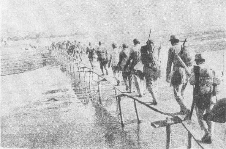 1947年9月中国人民解放军向湖北省英山县城开进 进军大别山第三次国内革命战争时期,中国人民解放军晋冀鲁豫野战军主力,向大别山区举行战略进攻的作战行动。1947年6月30日,刘伯承、邓小平率领晋冀鲁豫野战军主力四个纵队13万人,对敌军从山东到陕北“大哑铃形”阵势实行中央突破,在鲁西南强渡黄河,揭开了人民解放军战略进攻的序幕。刘邓大军渡河后即发起鲁西南战役,歼敌五六万余人;接着向南实行无后方的千里跃进,8月底到达大别山地区。 进军大别山亦称“鲁西南战役”。第三次国内革命战争时期,中国人民解放军由内线转入外线作战,向大别山地区举行战略进攻的军事行动。1947年6月30日,刘伯承、邓小平率领晋冀鲁豫野战军主力10多万人在鲁西南地区强渡黄河,揭开了人民解放军战略进攻的序幕。7月1日至28日进行鲁西南战役,歼灭国民党军6万余人。接着从8月7日至27日,连续粉碎敌人的追击堵截,千里跃进到达大别山。同时,华东野战军主力挺进鲁西南,9月进军豫皖苏; 晋冀鲁豫野战军的太岳兵团亦于8月由晋南强渡黄河,挺进豫西。三路大军转入外线作战,经略中原,直接威胁着武汉、南京,使国民党军队处于被动挨打地位,为夺取解放战争的胜利创造了条件。 |