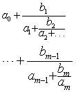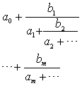 | 释义 | 连分数lianfenshu设{an)(n=0,1,2,…,m),{bn}(n=1,2,…,m)是由某域F中的元素所组成的有穷序列,则形如