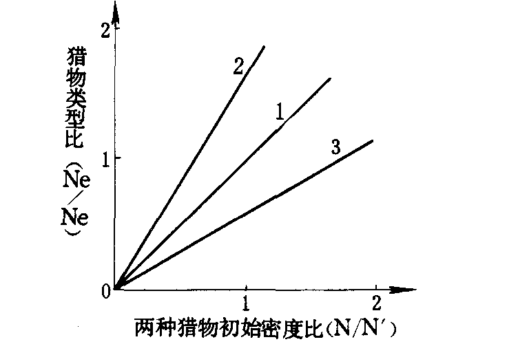 式中 1n为自然对数; α为捕食者对猎物Ⅱ的选择系数估值。 默多克法 默多克(W.W.Murdoch) 1969年提出两种确定选择系数的图示法。第一种为: