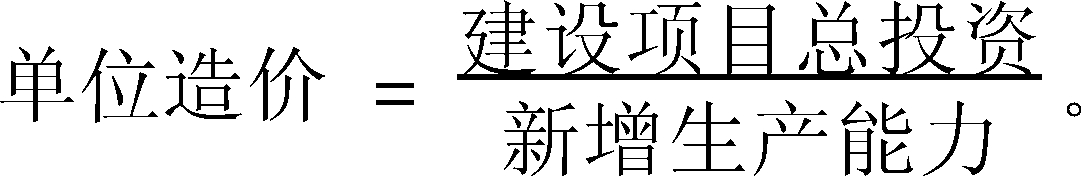❷单位造价。又称“单位生产能力造价”。计算公式为: