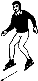 双脚转弯停止法 及全身急向左转左倾,以左刀外刃和右刀内刃同时向左前方向切冰。教学重点:❶梨状停止法——学会扣膝和用双刀内刃切冰动作。可在慢滑中体会动作要领。❷双脚转弯停止法——先做半蹲双脚平行蛇形滑行练习,体会身体左倾时重心的支撑点,以消除紧张心理。再做中速滑行的转弯练习。 |